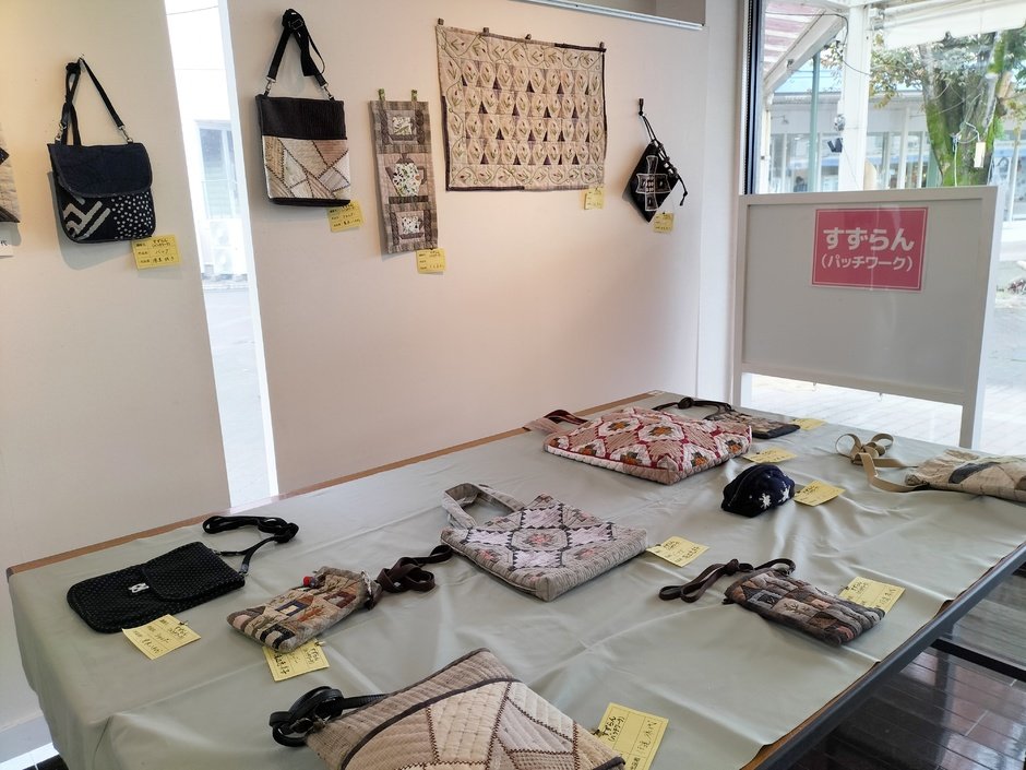 「すずらん」では、ベッドカバーなどの大作やバックなどの小物を一針、一針、丁寧に心をこめて作り上げた作品を展示しています。