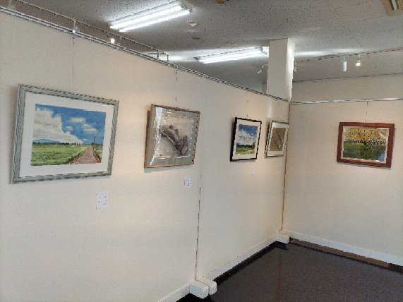 清野氏の教室生、水彩画講座「麦」「絆」 アクリル画講座「ローズ」 絵画講座「菜の花」皆さんの、初めての合同展になります。
