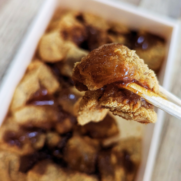 沖縄産の黒砂糖を使用した上質な餅菓子で、西都市内に残る神話の舞台「逢初川」が名前の由来。くるみの粒のアクセントと、みりんとしょうゆの甘じょっぱい風味が後を引く美味しさです。