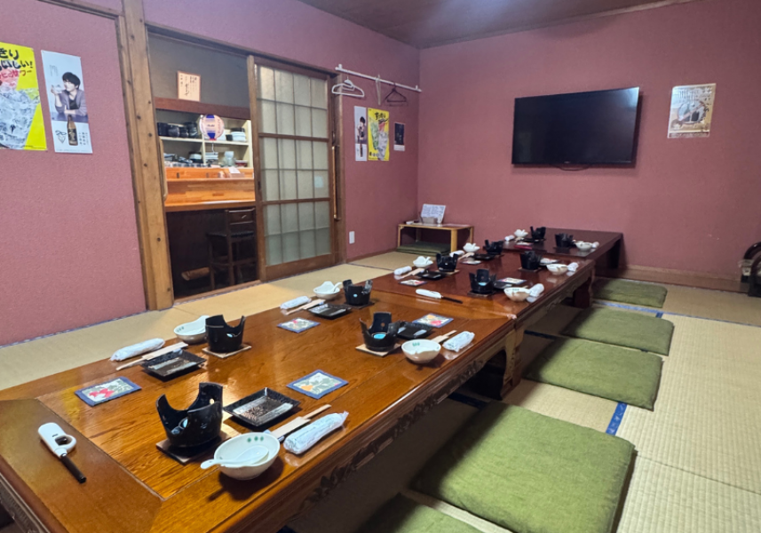 大きめのテレビを備えた2階席は、ふすまを外せば最大30名ほどまで対応可能。