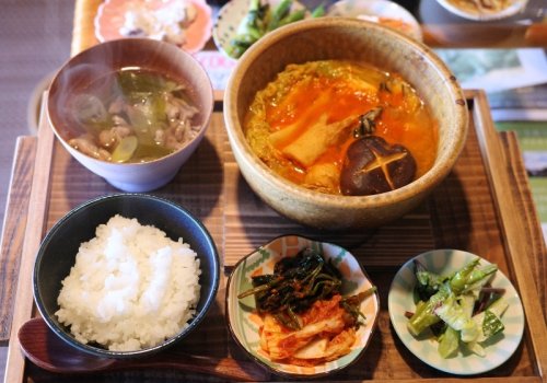 ランチメニューは、本日の汁物・副菜各種が食べ放題です。ぜひ味わって欲しい自慢の一品は、無添加・無着色のキムチ。季節により、スイカ・梅といった変わり種もあります。