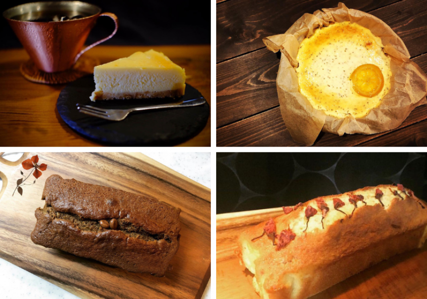 カフェのおともは、日替わりのケーキ。 チーズケーキ、林檎と紅茶のパウンドケーキ、無花果と胡桃のパウンドケーキなど、季節やその日の気分でご用意しています。