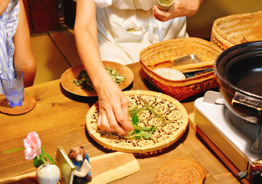 ここでは、自分で摘んだ野草を煎じて飲む、野草茶作りの体験ができます。所要時間は1時間~90分程度。