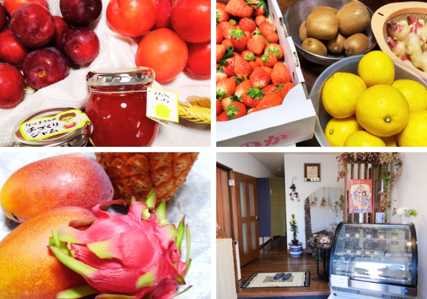 【季節】1月:安納芋/2月:しょうが・苺・苺(紅ほっぺ)・金柑/3月:日向夏/4月:生姜(通年)/5月:マンゴー/6月:すもも・ブルーベリー・桑の実・梅/7月:パイナップル/8月:梨/9月:りんご・スパイスりんご・りんごカラメルバター・いちじく・さつまいも/11月:キウイ・紫いも/12月:ぽんかん
