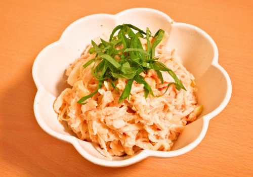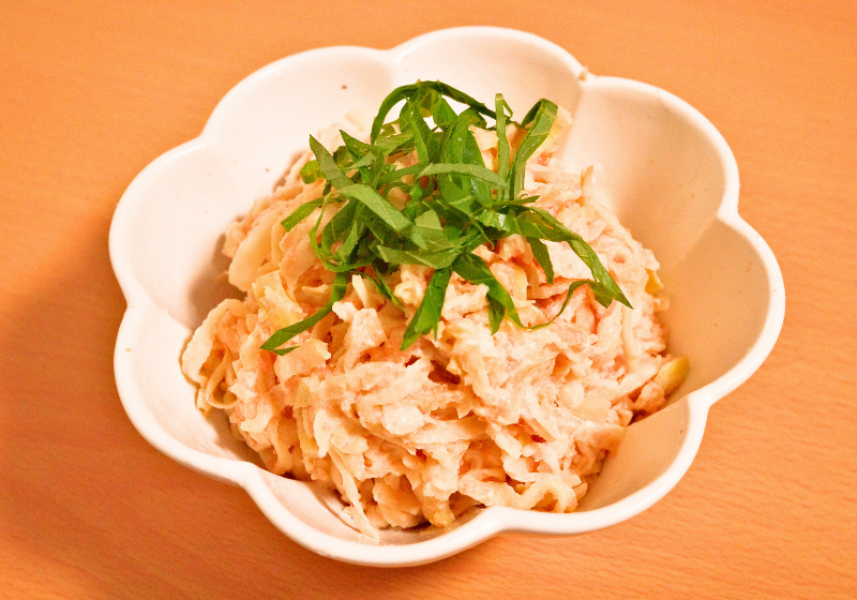 煮物、和え物、炒め物など、料理の幅が広がり、食物繊維が豊富でヘルシー。手軽に使える「せんぎり大根」は、水で戻してめんつゆ・マヨネーズに、ツナや明太子を混ぜるだけで美味しいサラダに。