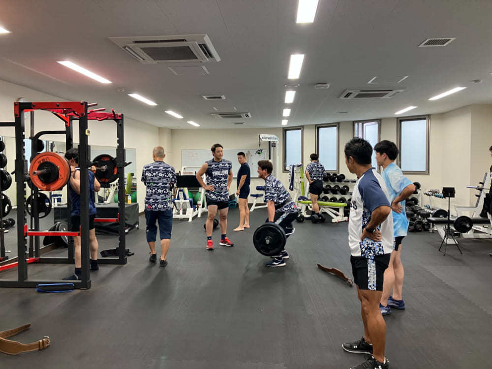 西都原運動公園野球場の一室では、東京ヤクルトスワローズの選手たちが筋トレに励んでいました。他にも、マッサージルームや食堂などもあり、すばらしい環境があります。
