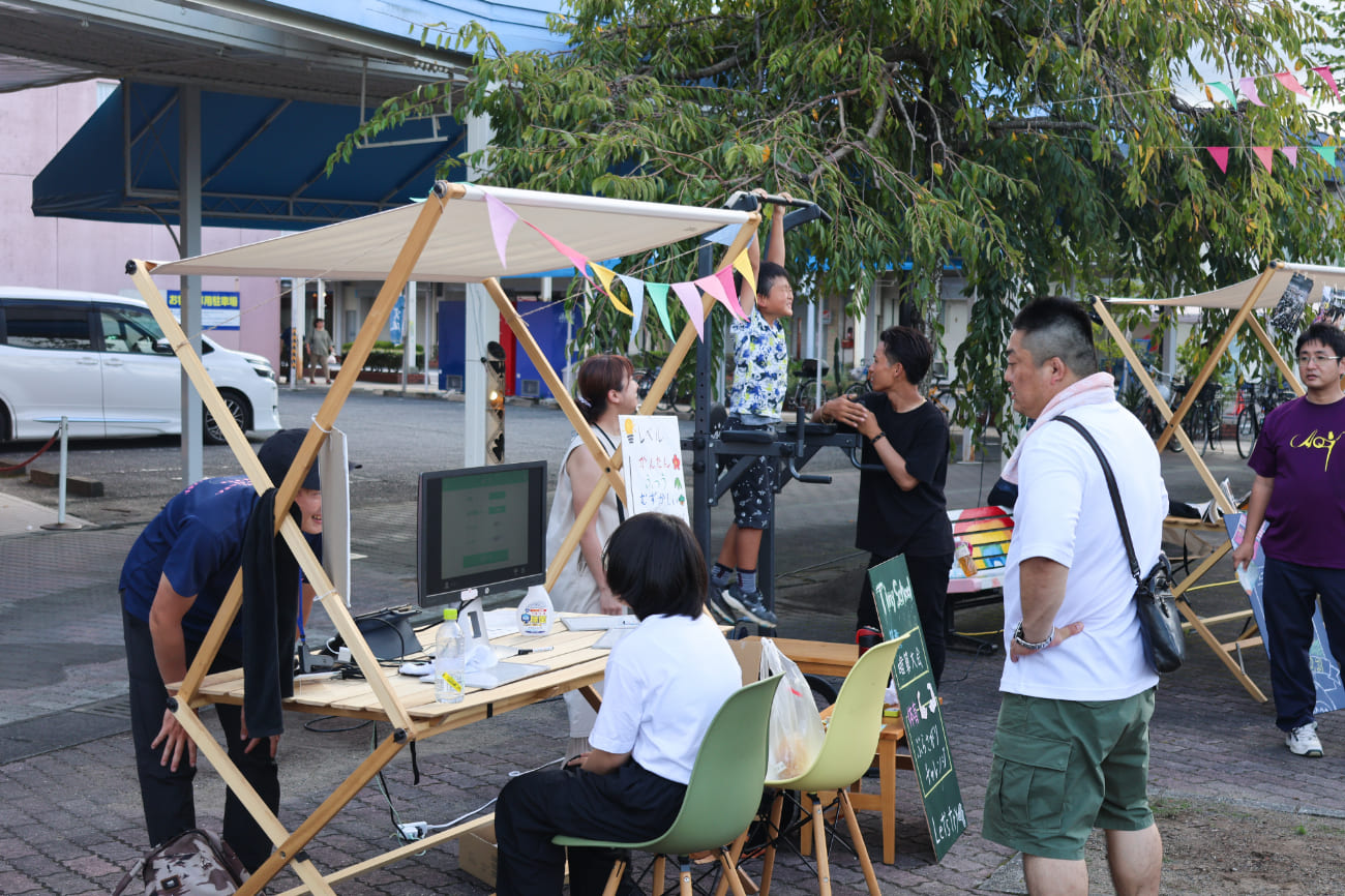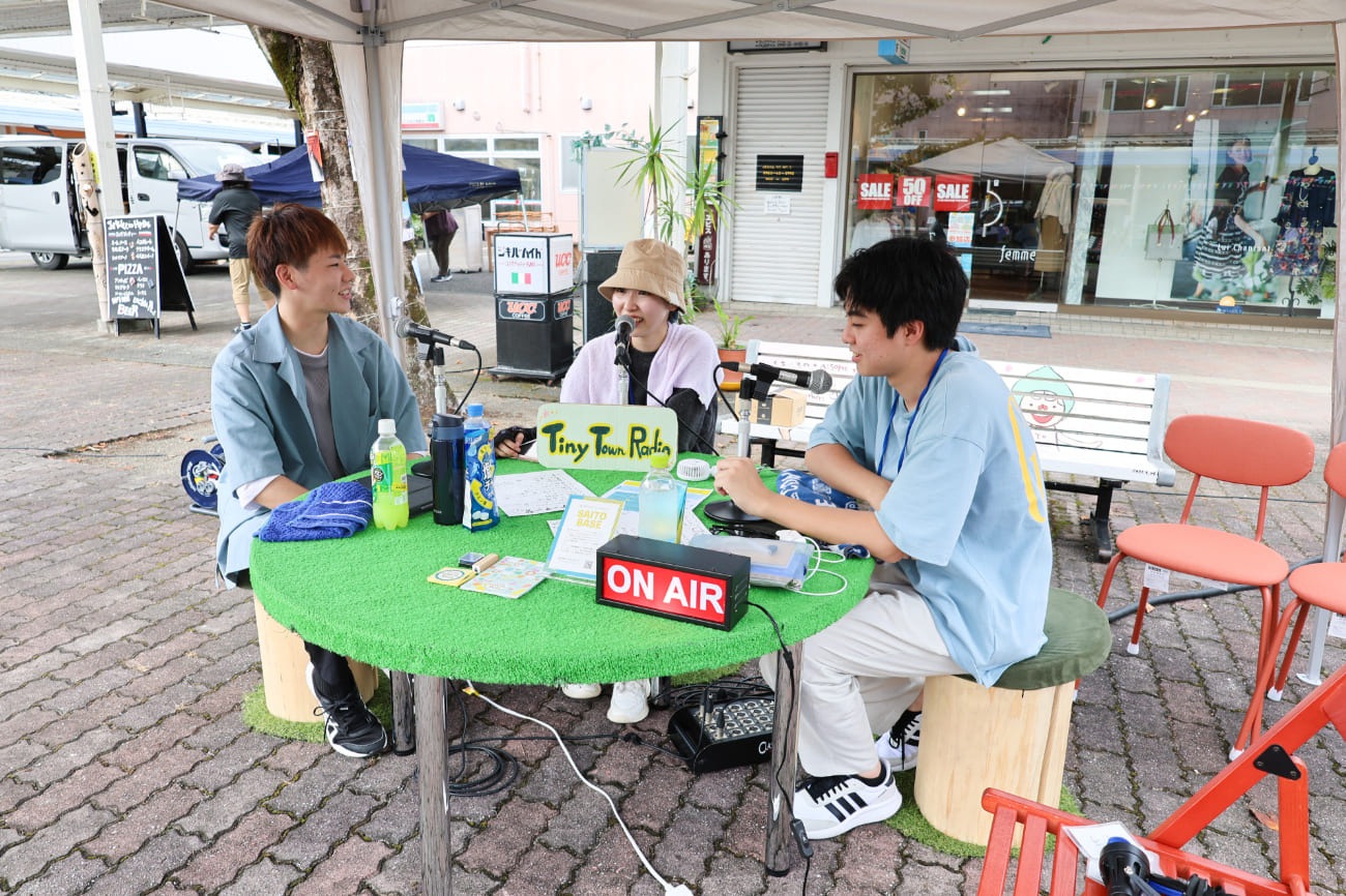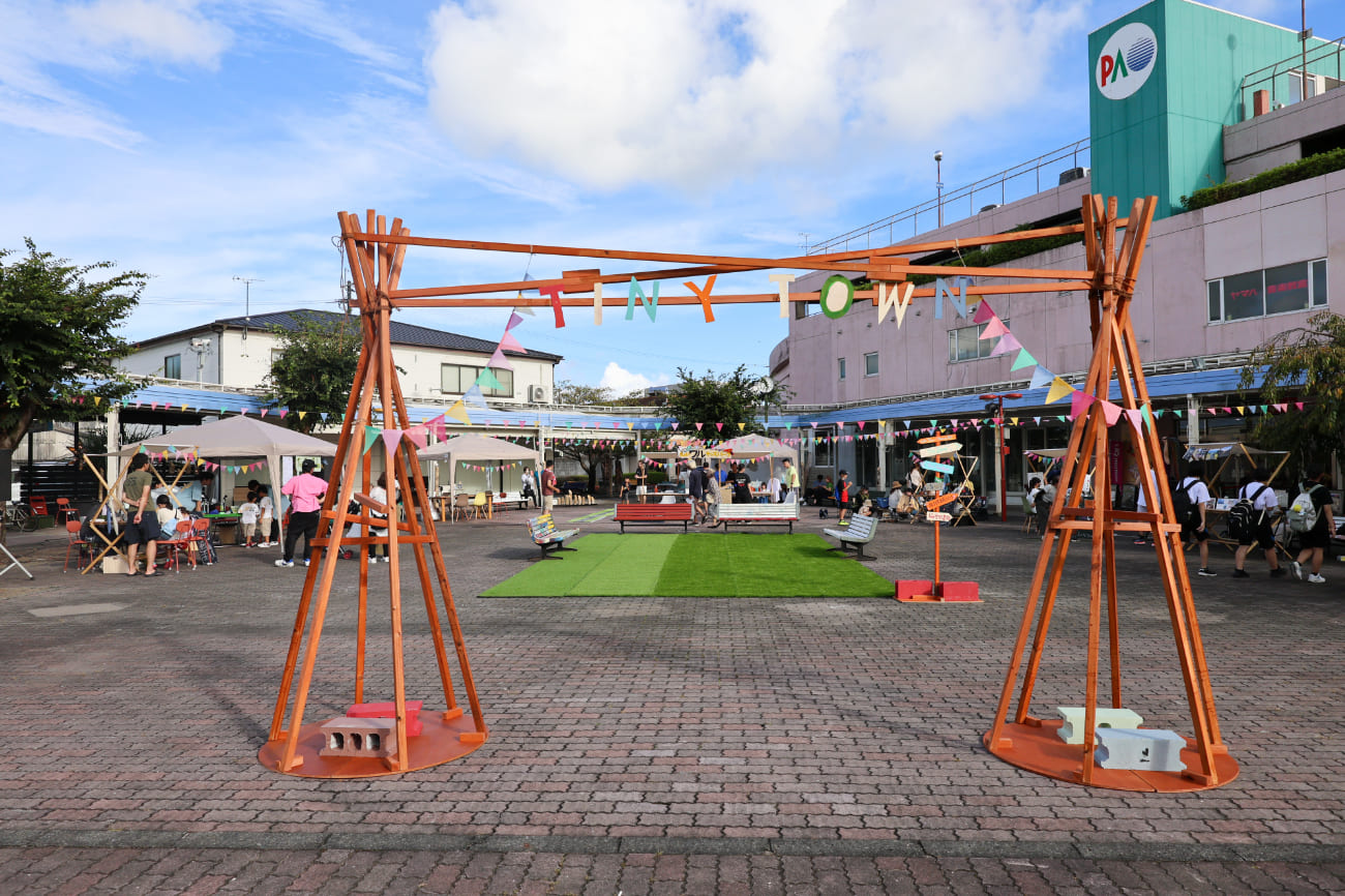 この日はスペシャルイベントとしてあいそめ広場に1日限定の小さな町「SAITO BASEのTiny Town」が開催されました。Tiny Townにはちょっとクセがあって、面白い屋台たちが集まっていて色んな体験を無料でお楽しみいただけるイベントです。