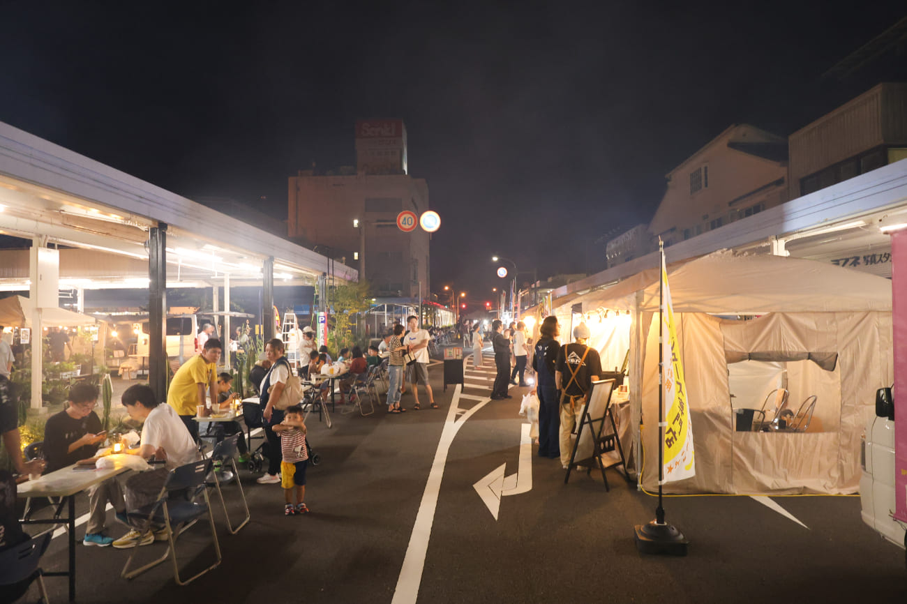 「いつもよりちょっとだけ賑やかな日常」をコンセプトに西都市や宮崎県内の飲食店、物販店が立ち並び西都の夜を彩ります。