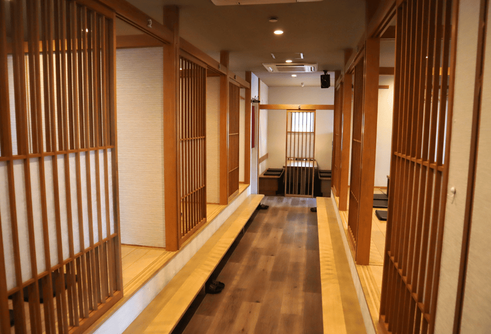 奥には掘りごたつの個室が4つ、テーブル席が2つ、大座敷が1つ。最大50名での団体利用も可能で、ご家族や親族、友人や職場の仲間など、幅広い用途でご利用いただけます。