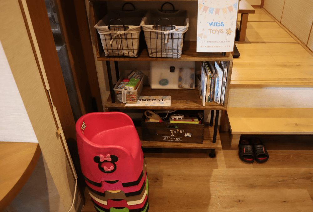 「家族連れでも喜んでもらえるお店づくりがコンセプト」と語ってくださった寺原さん。店内にはお絵かきセットや絵本といった、小さな子ども向けのアイテムが用意されるなど、家族連れでも訪れやすい細やかな気配りがうかがえます。
