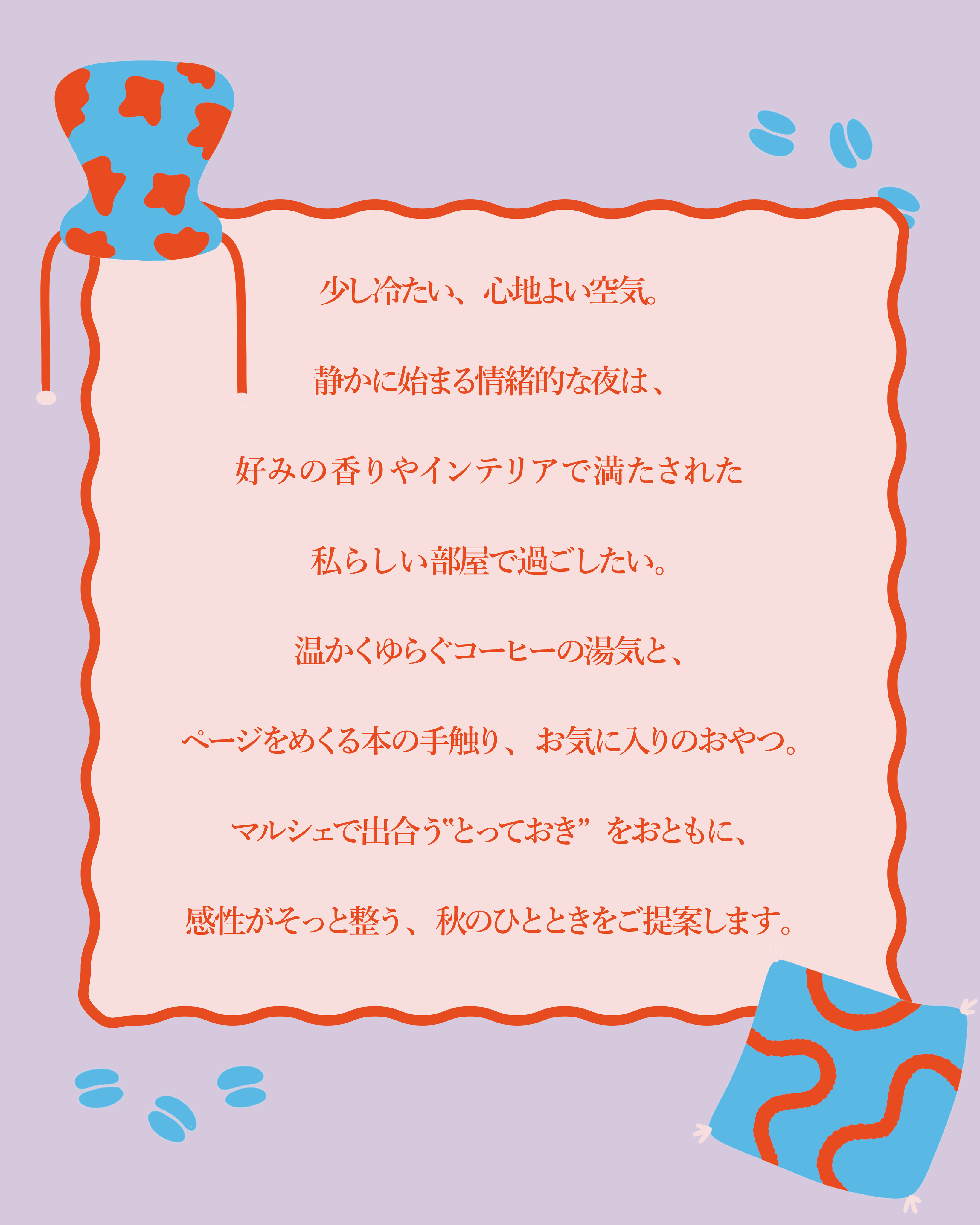 読書は、押川さんにとって“心を整える時間”のひとつ。11月9日のマルシェでは、そんな押川さんの感性が詰まった本が並ぶ。どんな本が並ぶのか――マルシェでその本棚をのぞくのが楽しみだ。