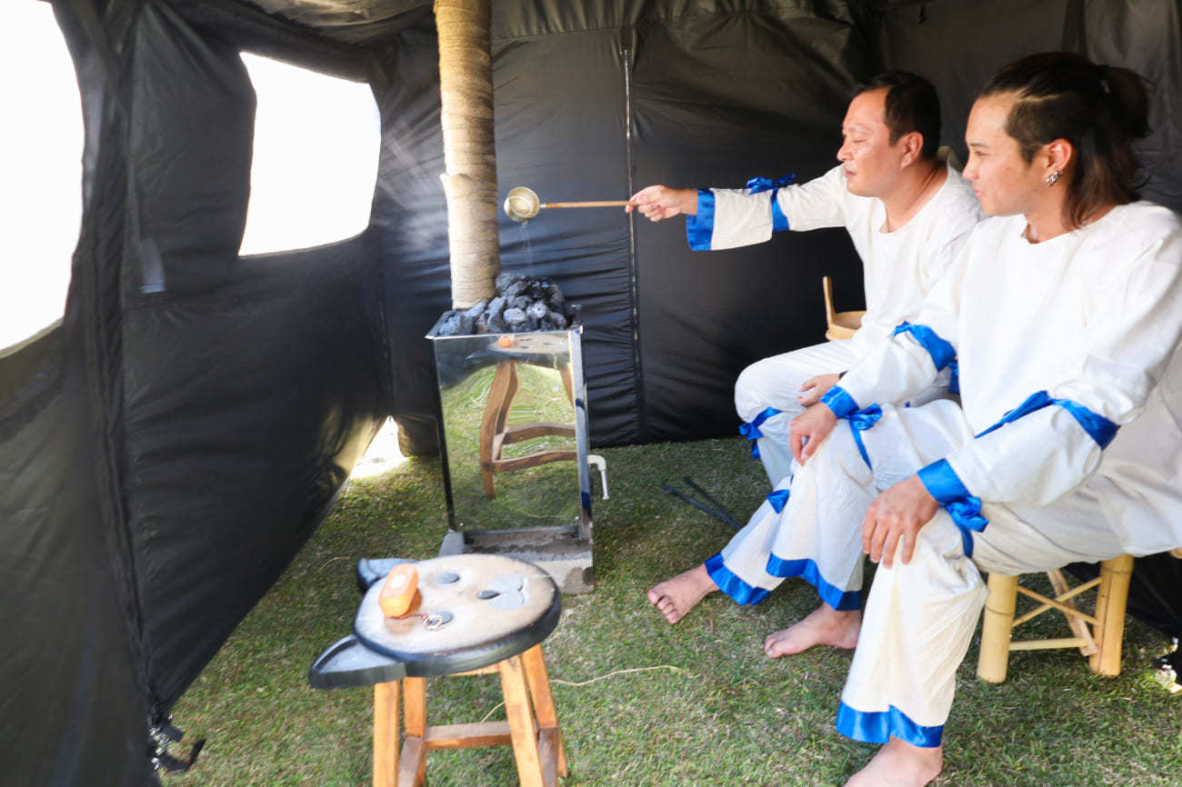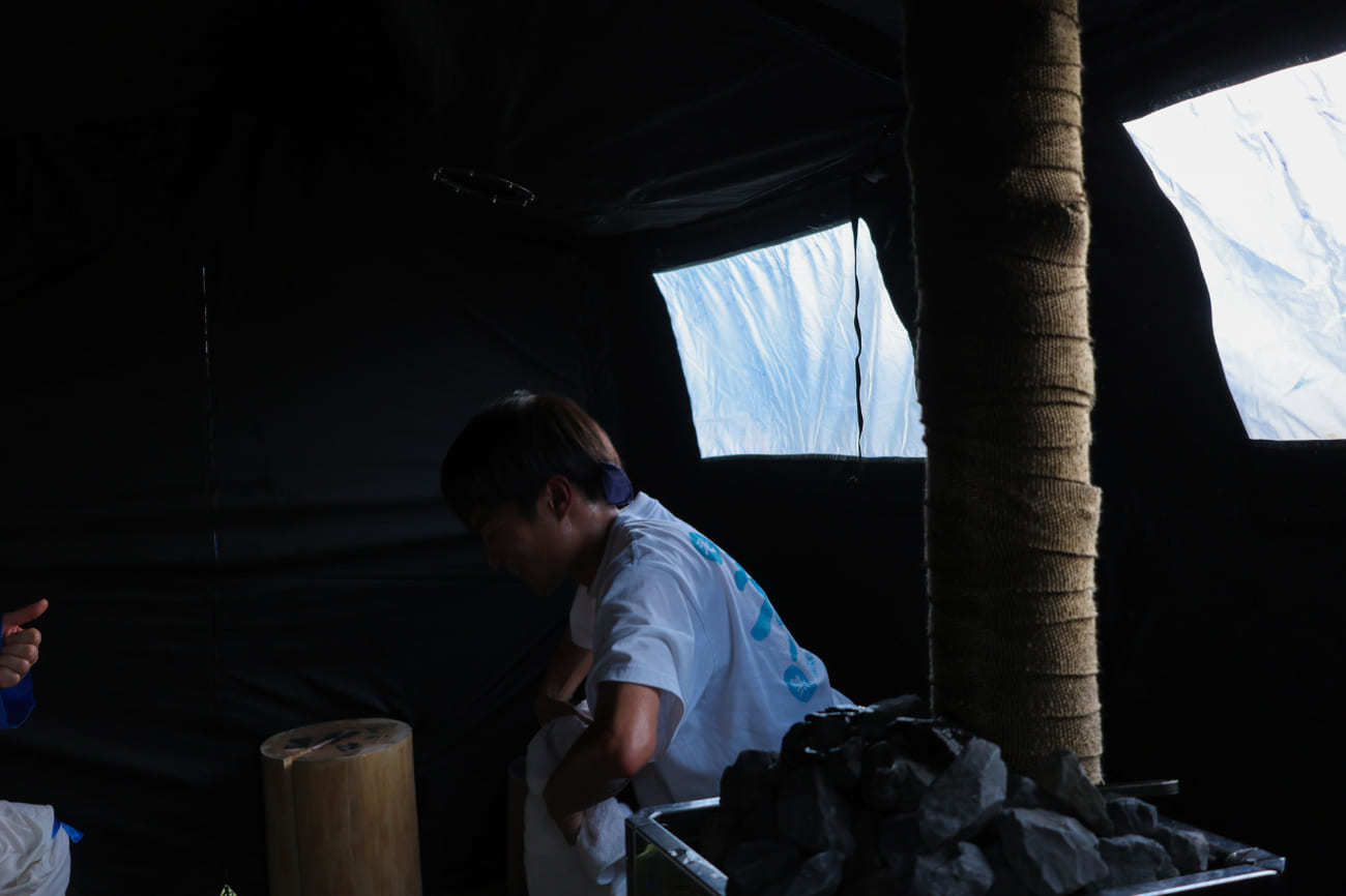 アロマオイルをロウリュウ水に混ぜてロウリュウするとテントサウナ全体がいい香りで包まれます。