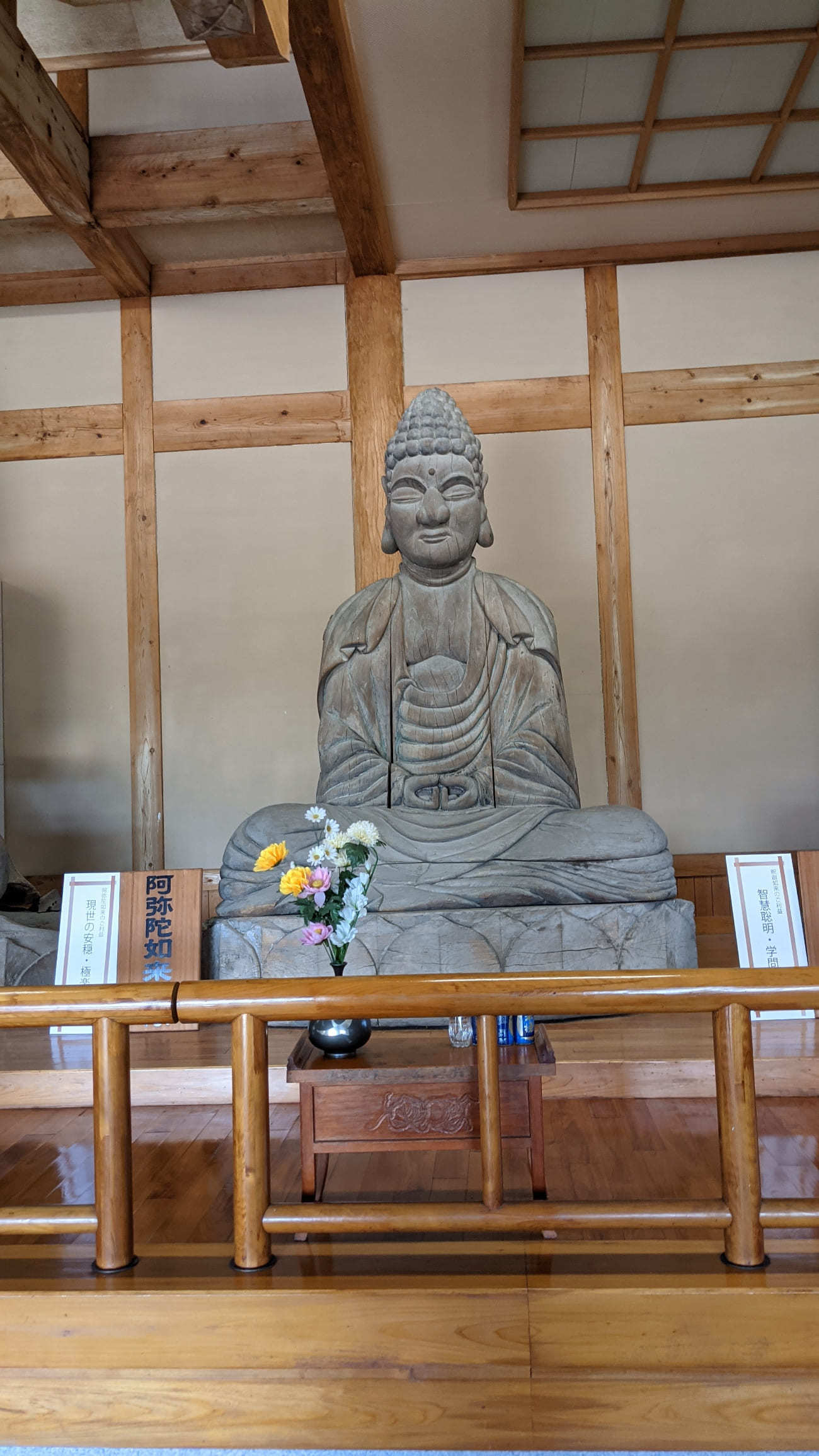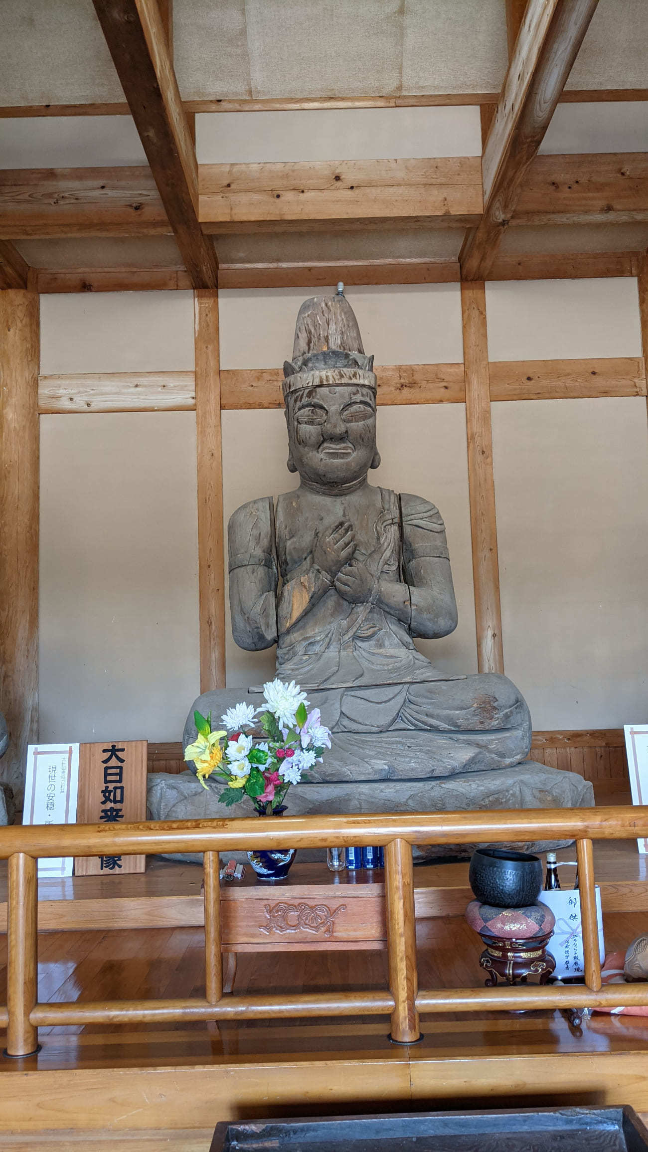 館内には木喰上人作の如来坐像が安置されています。楠の大木を用いた5体の仏像は『五智如来像』(ごちにょらいぞう)と呼ぶそうです。