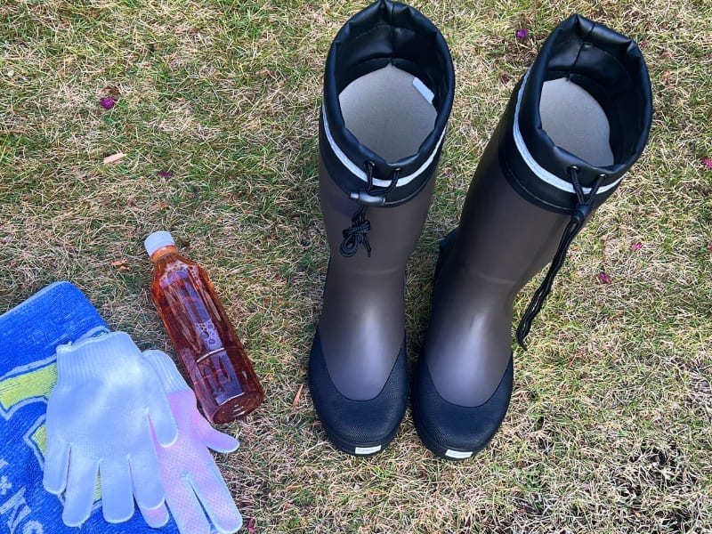 「スニーカーだと土に足が埋まって汚れるよ~」との話だったので、長靴を購入して準備万端で挑みます!