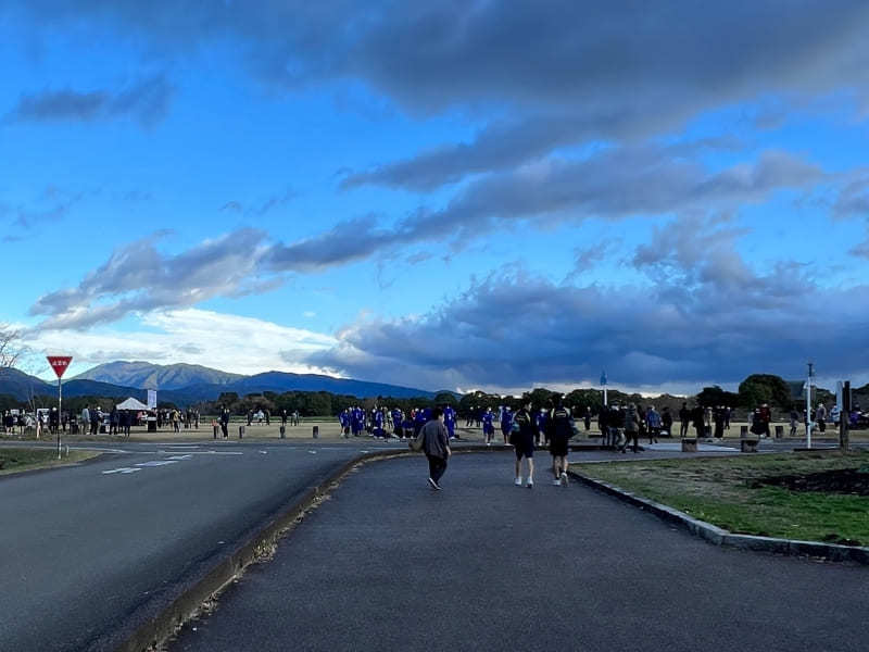 大型のバスも駐車場にとまっています。そして訪れた人たちは、集合場所の『西都原古墳群イベント広場』の方へ。