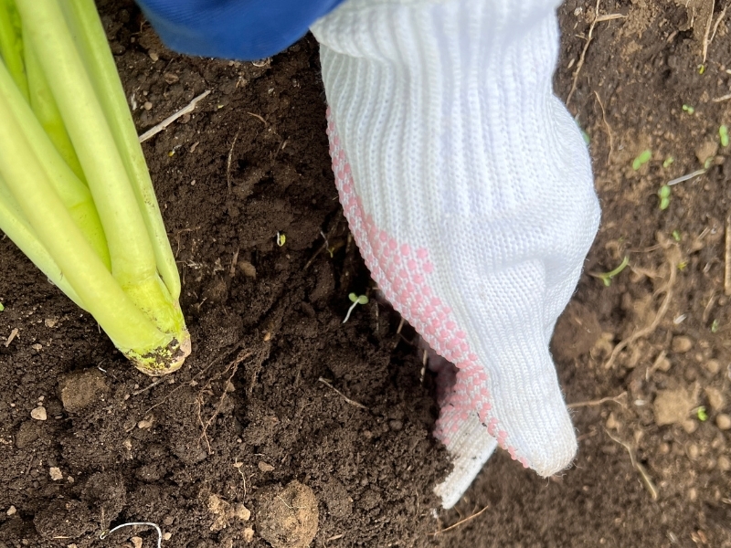 誰かがポイポイ苗を置いていけば、根が出ている苗を見つけた人は埋めていくという、深く考えずにとにかくどれかの作業をしていけばOK☺︎