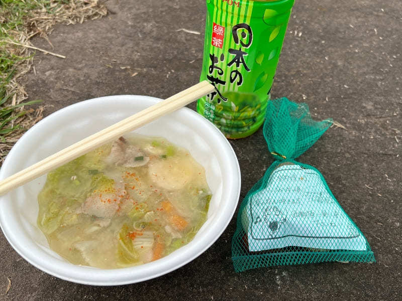 4年ぶりにふるまわれたという愛情たっぷりの豚汁は具沢山で、疲れた体に染み入る美味しさ。