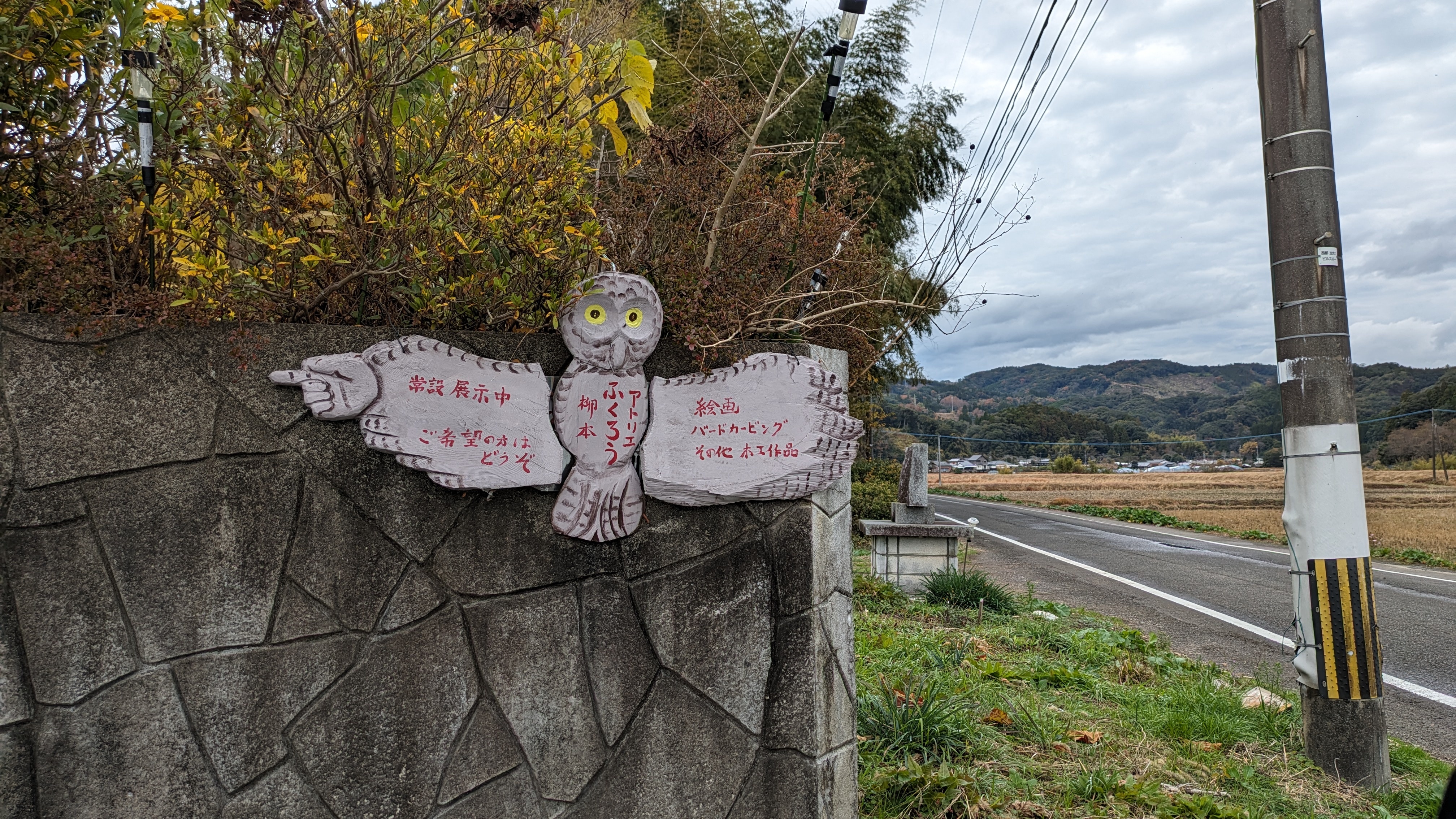 西都市街地から車を走らせることおよそ15分、田園風景が広がる三納の道にふくろうの看板が見えてきました。