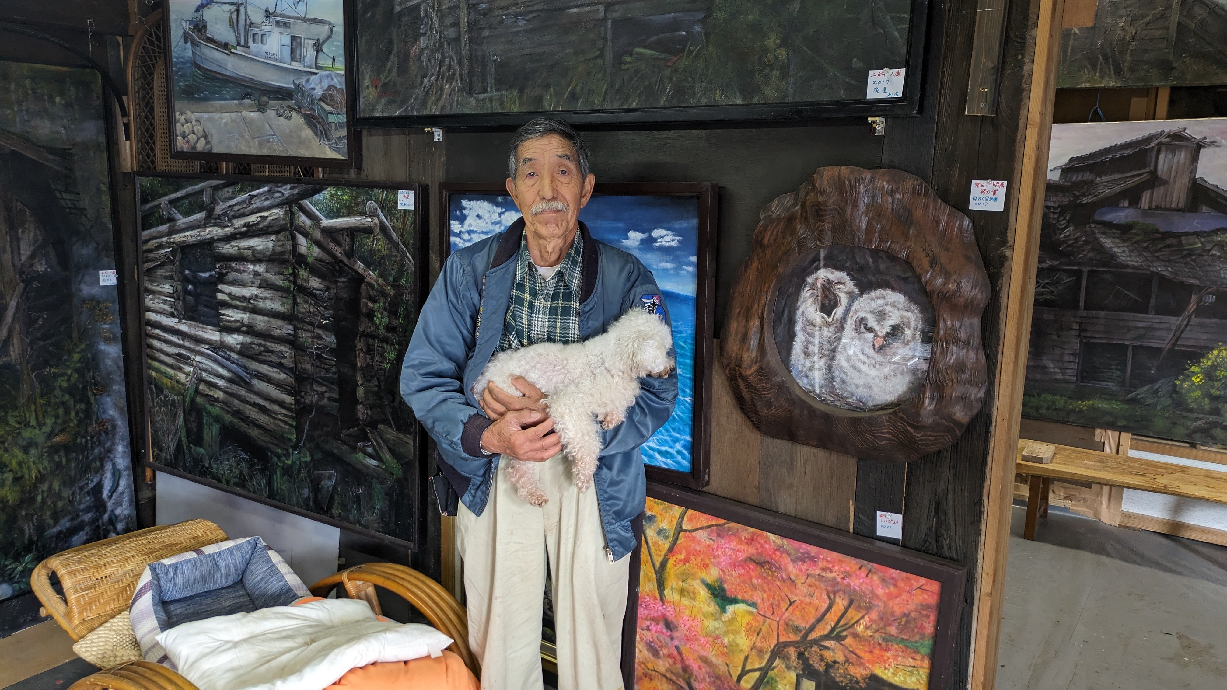こちらで活動するのは、作品の展示兼アトリエのふくろう工房を営む芸術家、柳本正雄さん。柳本さんは木工作品に絵画と心を込めて作品を作り続けており、その才能が今脚光を浴びています。