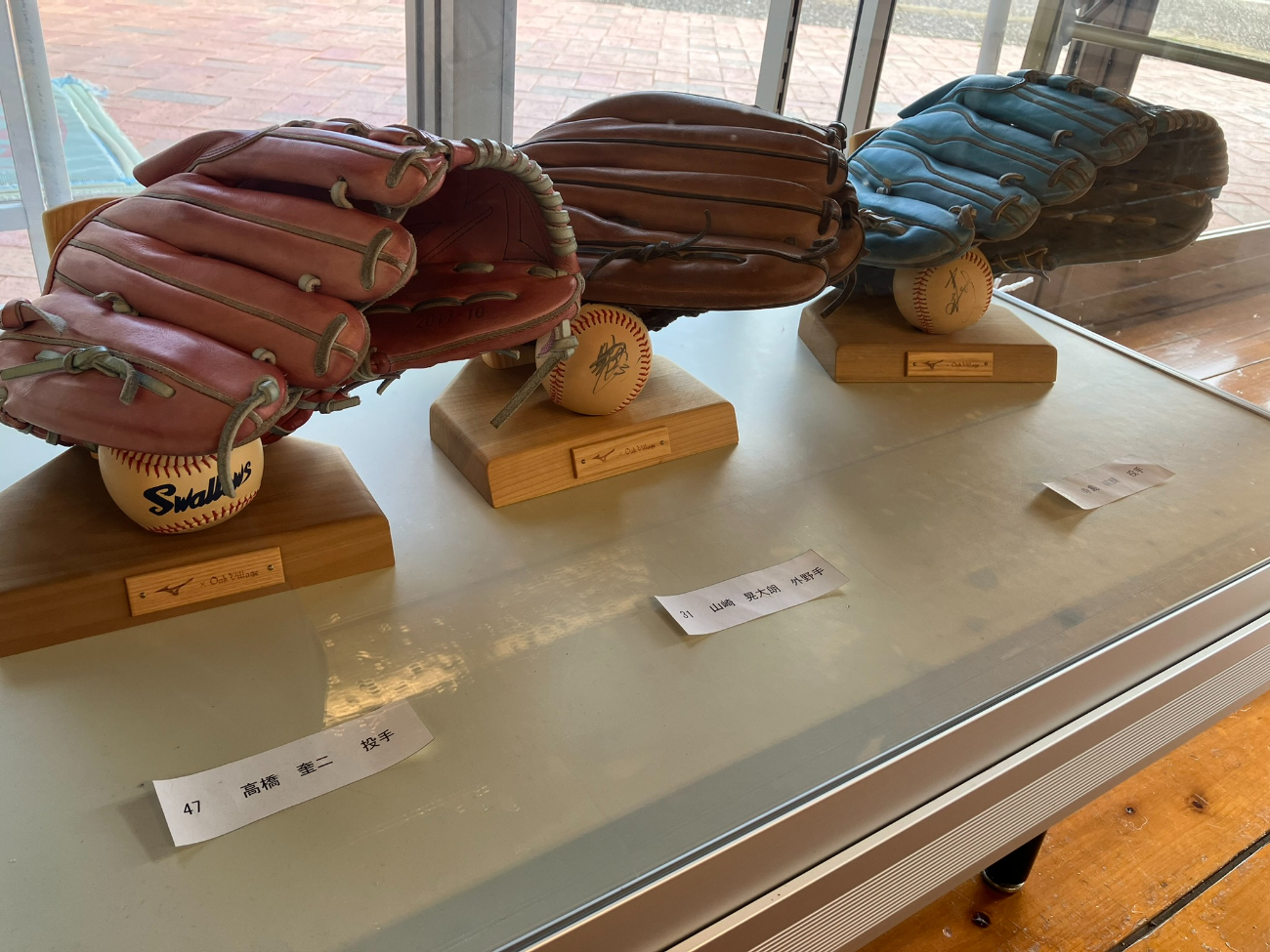 有名投手が使用したグローブと直筆サイン入りのボールもありました。いや~興奮しますね!