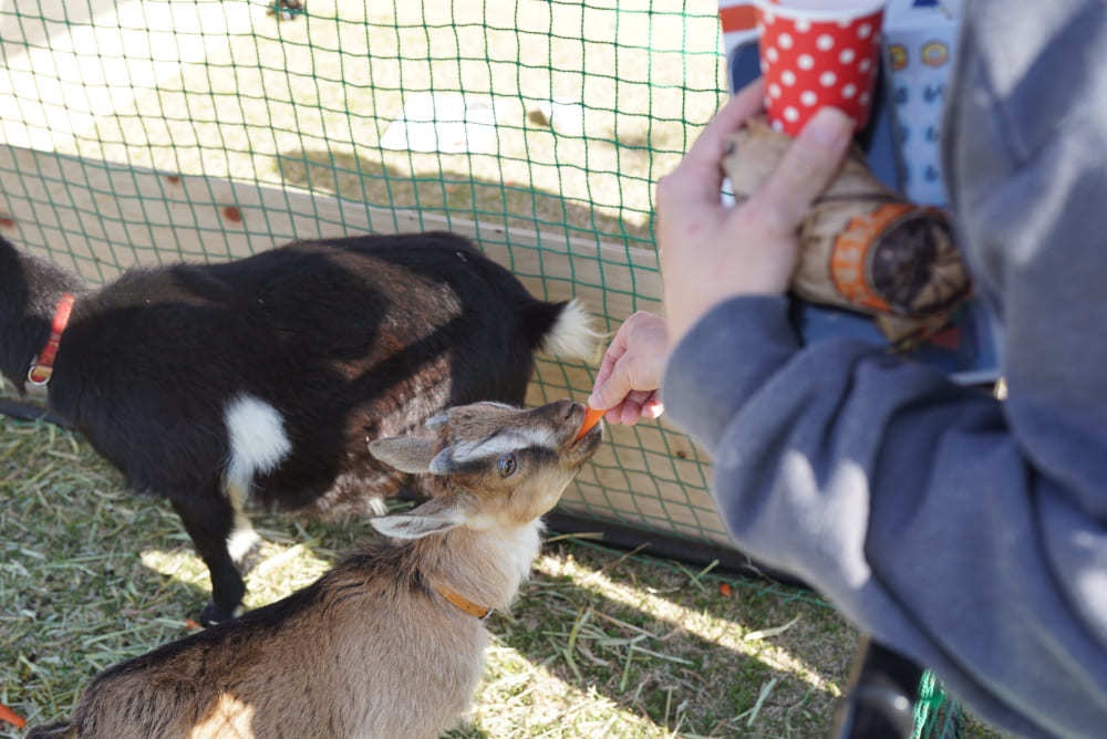 ポニーやヤギのエサやり体験、メダカすくいなど動物と触れ合えるコーナーもありました。
