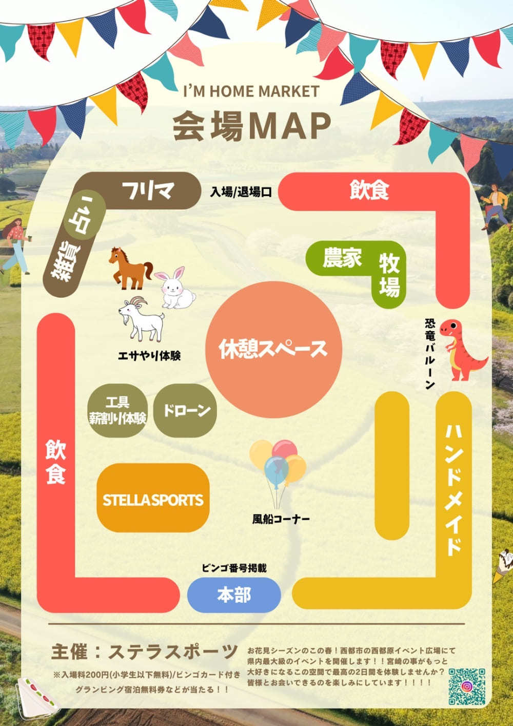 はじめに、Iʼm Home MARKET in Saitoに多⼤なるご⽀援を頂きました⻄都市、協賛企業様、 出店店舗様、妻⾼校ボランティア、⾼鍋農業⾼校ボランティアの皆様、 誠にありがとうございました。