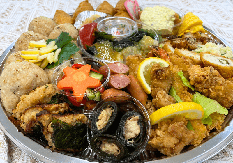 ご飯物・チキン南蛮・うどんなど、ご要望に合わせたオードブルのご注文も承っていますので、まずはお気軽にお電話でご相談ください。