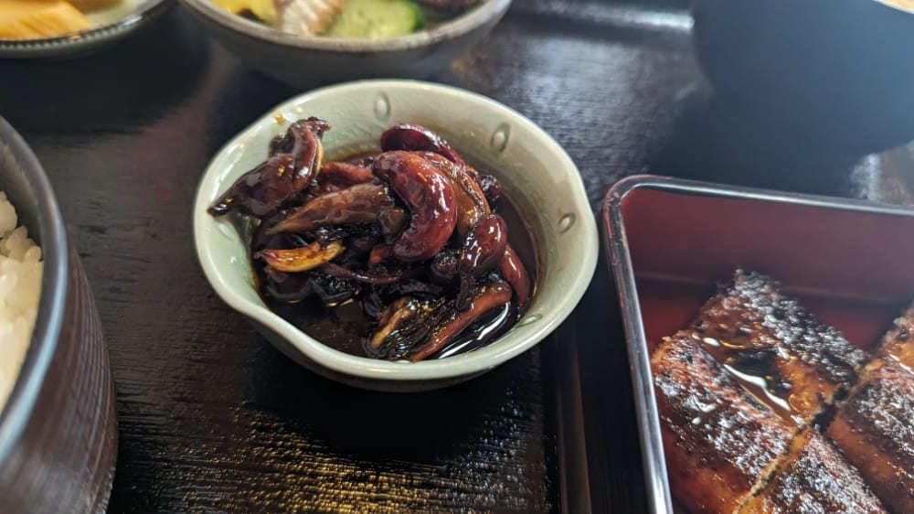 うなぎの肝甘煮には、1尾からひとつしか取れない希少な肝が7~8匹分とたっぷり!うなぎの肝が好きな人にはたまらない一品です。
