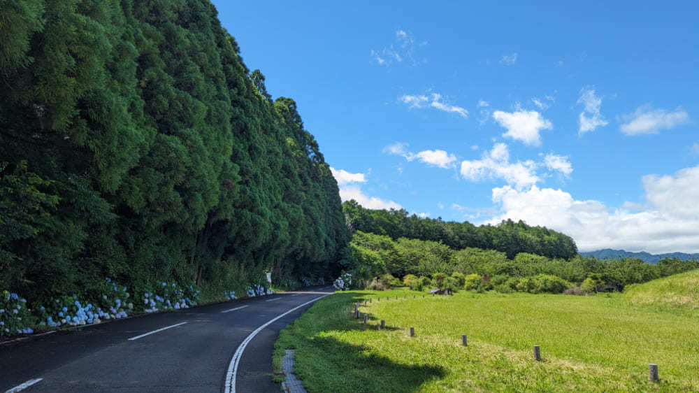西都市街地から西方におおよそ2キロ、車で約5分の場所に位置している西都原古墳群。この古墳群の中にも、紫陽花が咲き誇るスポットがポツリポツリと点在しています。