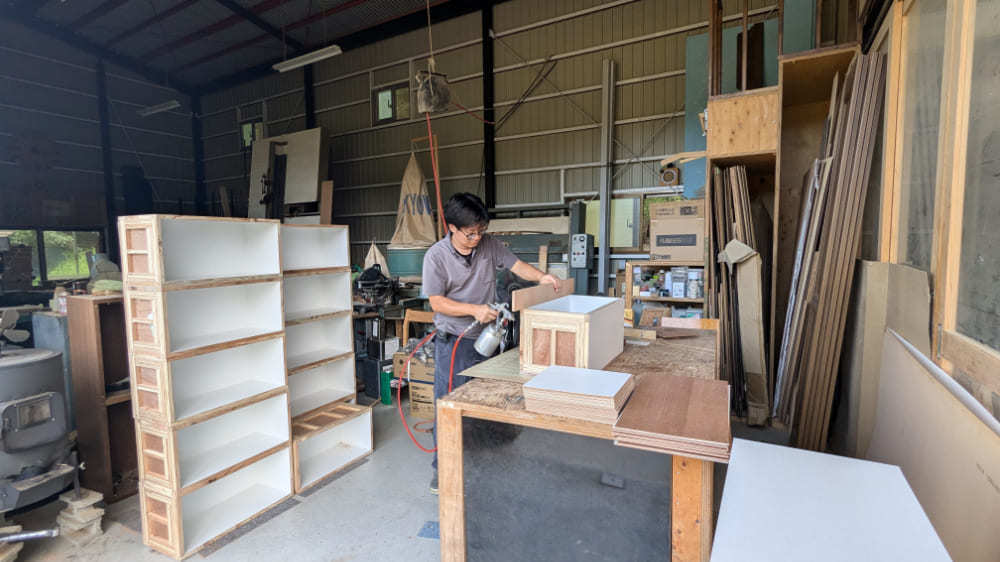 約1年半の準備期間を経て、2021年12月1日に「YAMATO Wood Works」を開業。工房は、自ら建設しました。