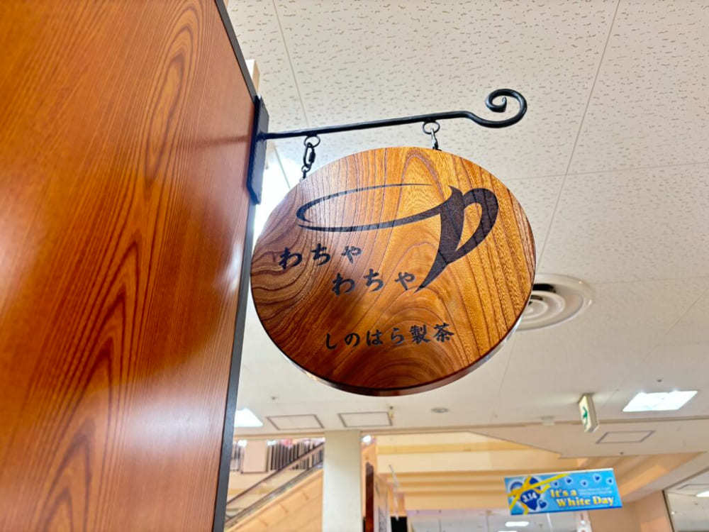 コミュニティプラザPAOにオープンした「しのはら製茶お茶かふぇ 輪茶和茶」のレジカウンターから商品棚まで、店舗内のほぼ全てを3ヶ月かけて1人で製作しました。