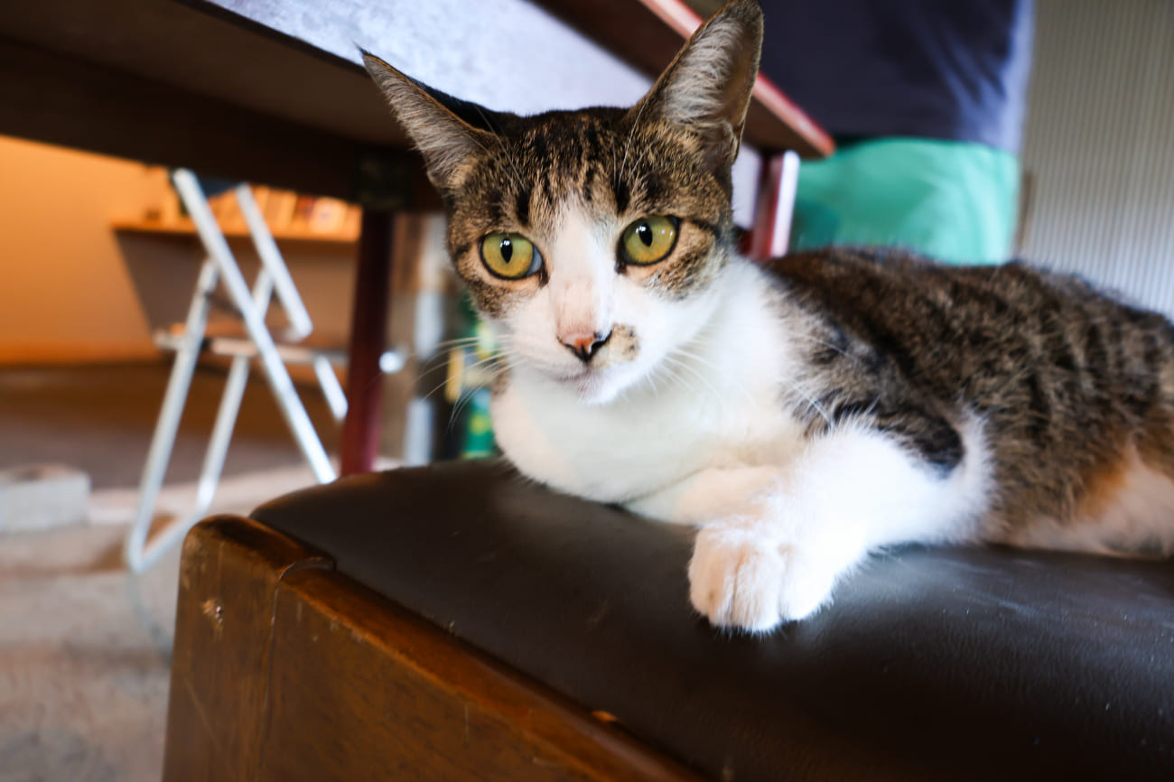 茶臼原ひみつのサウナに行くと、店主の丸山さんと看板猫のみ~ちゃんが笑顔で迎えてくれました。