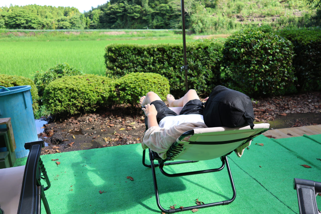 田園風景が広がる敷地では西都市の自然をたっぷり感じられ、都会の喧騒を離れて、心も体もリフレッシュするのにぴったりの場所だと思います。