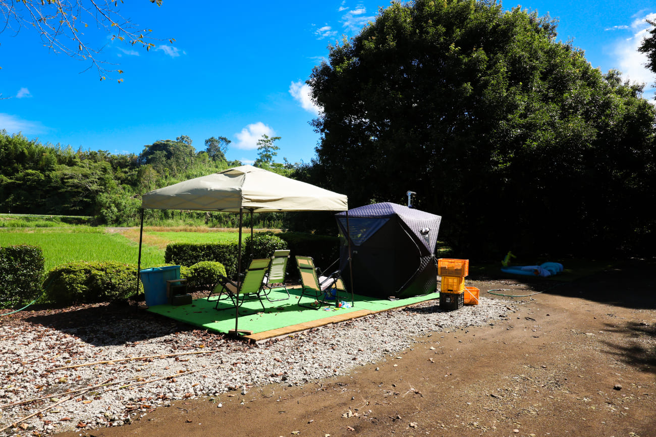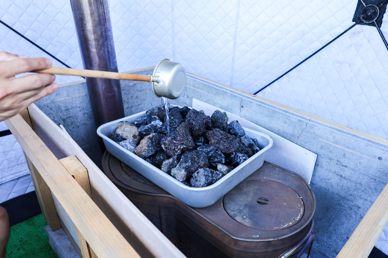 テントはレンタル式となっており、店主の丸山さんが組み立てから、薪ストーブの温め方までしっかりレクチャーしてくれるので、初めてアウトドアサウナに入るという方でも安心して楽しむことができます。