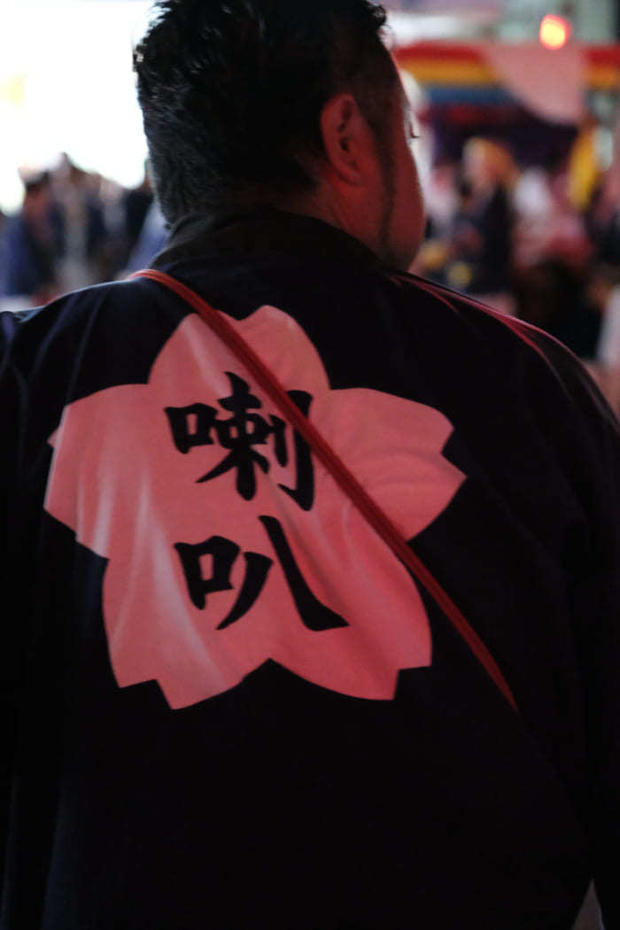 鉢巻・腰帯は班色のものをつけ、役職が付いているものは法被の後ろにそれぞれの役職が書かれてあります。