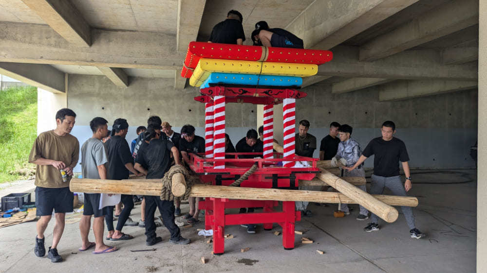 実は、担ぎ手の練習はなく当日ぶっつけ本番なんです(笑)というのも、太鼓台を組み立てるのが祭り前日です。