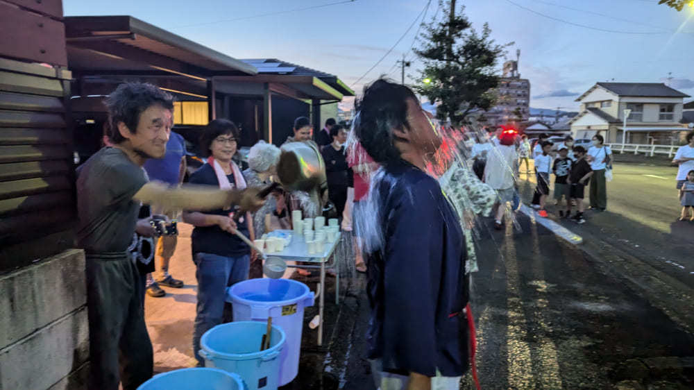 互親組 太鼓台は、住民の協力なしには執り行えません。コースの所々には組員の水分補給と水浴びを行う「力水」スポットが存在します。この場所も住民の協力があり成り立っています。