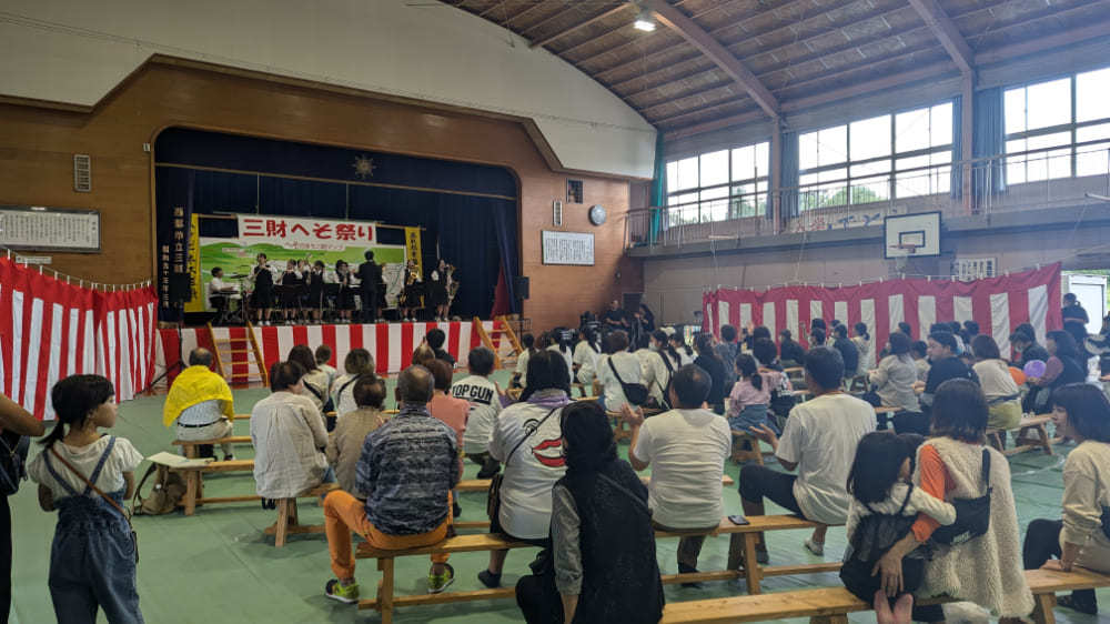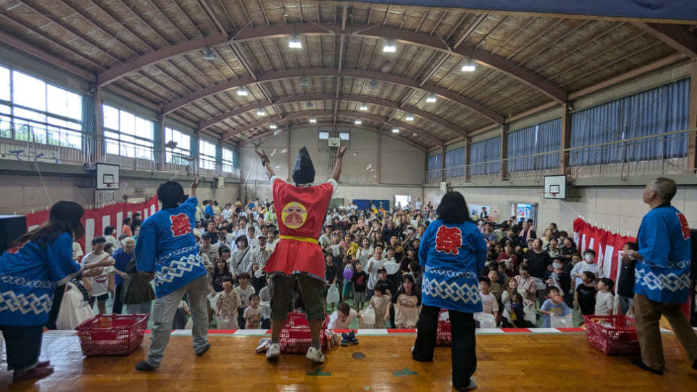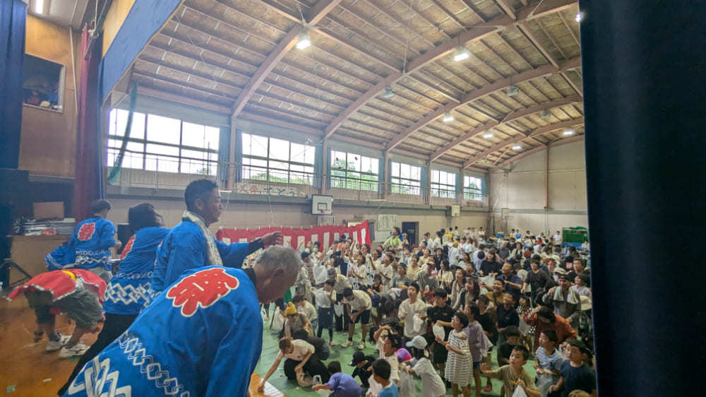 三財小中学校の学生をはじめ、若者からご年配の方まで、幅広い世代が力を合わせて作り上げるこの祭りには、いつも活気とエネルギーがあふれています。