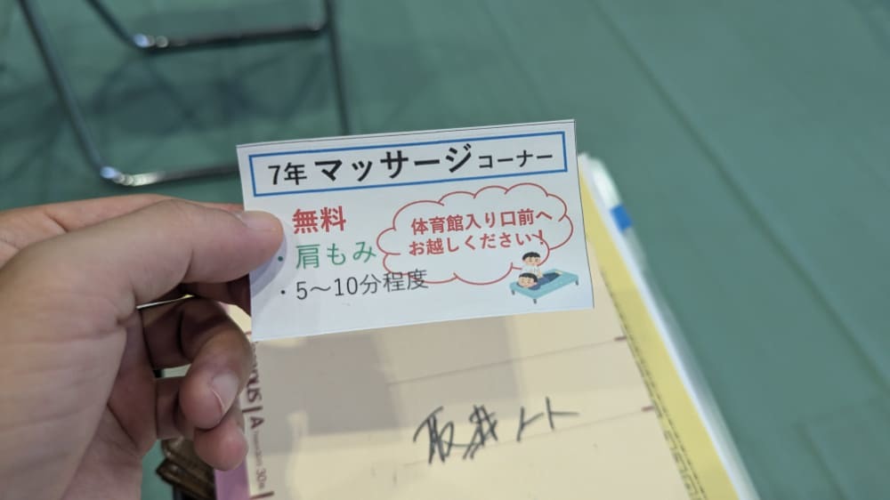 ステージイベントを取材していると、学生さんがこのような「マッサージ券」を渡してくれました。