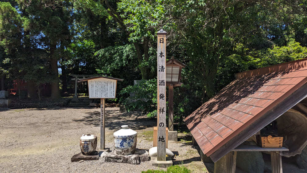 そのため都萬神社にはこの地が清酒発祥の地であるという碑も建てられています。都萬神社の伝承地に由来する周辺には「妻」「酒元」という地名が残っています。