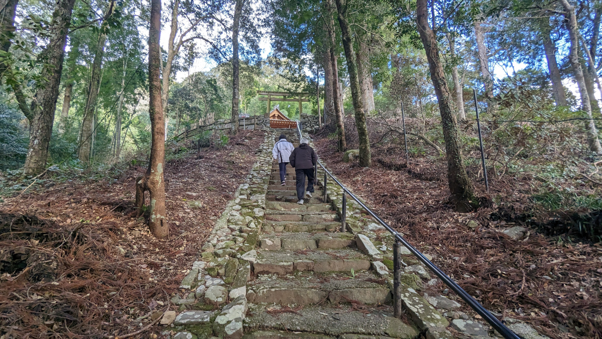 参道は急な階段と坂があり登っていくと三宅神社が鎮座しています。