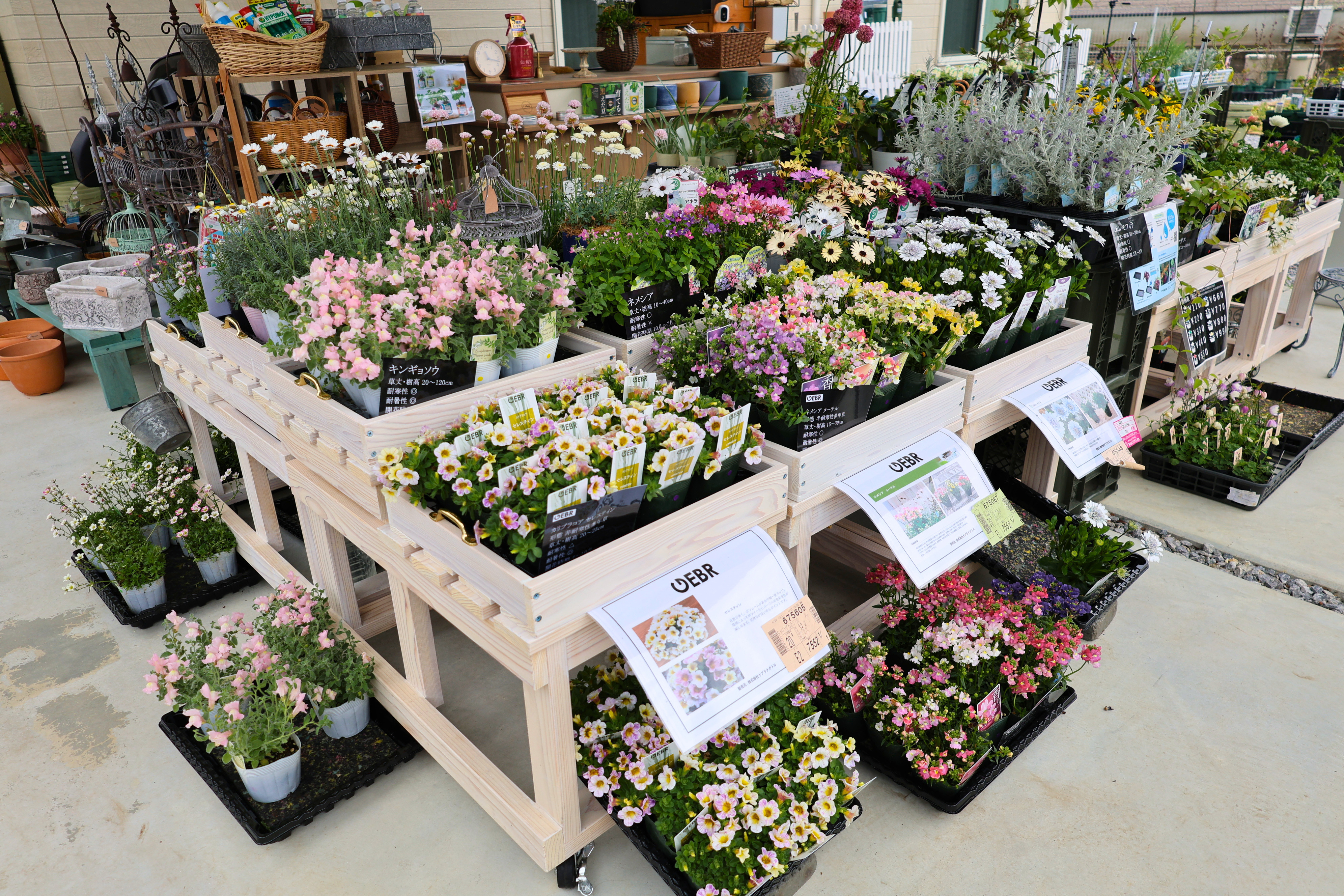店内に並ぶのは、ホームセンターではなかなか見かけない、珍しい品種や高品質な苗たち。