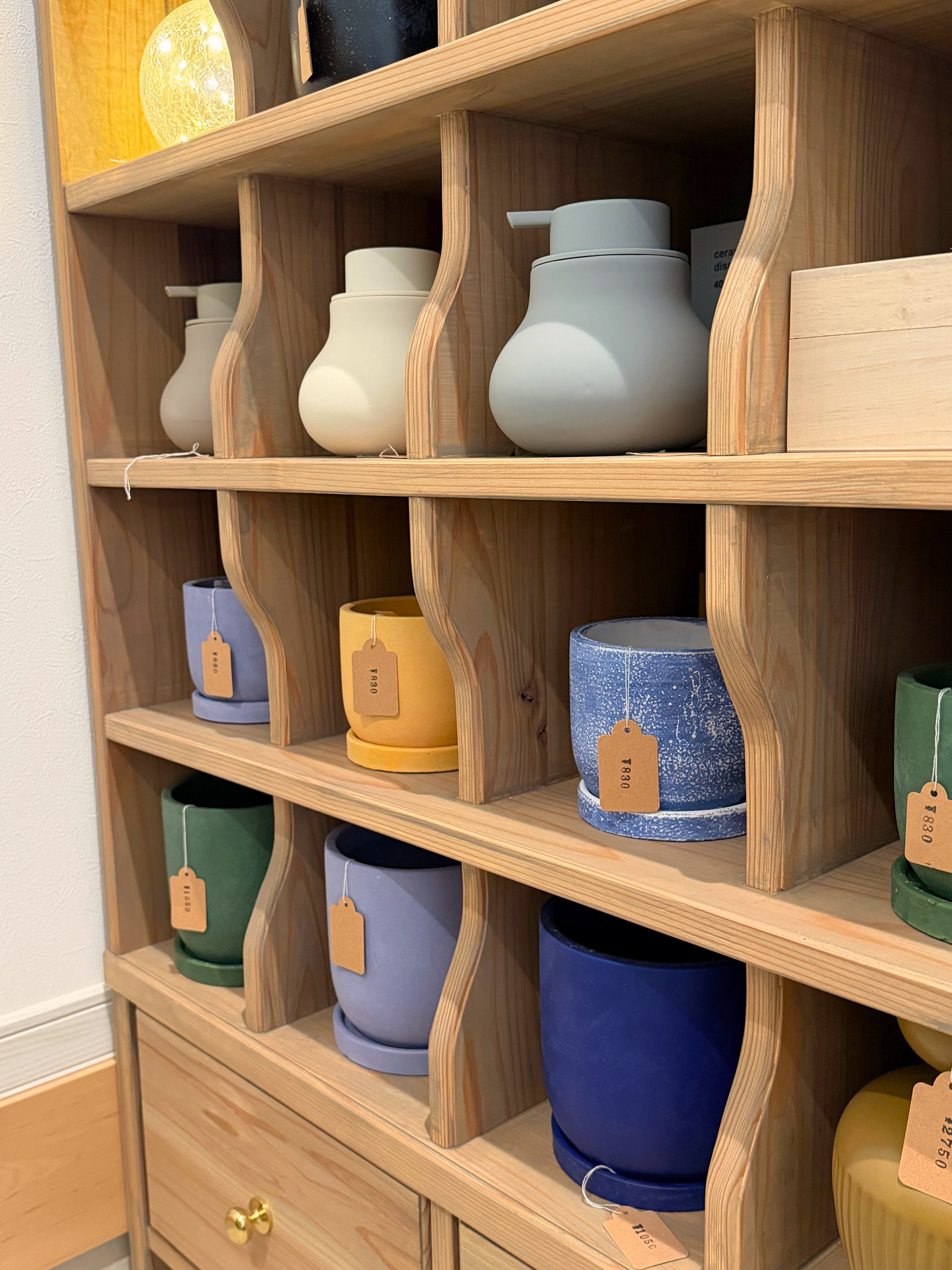 ガラスベースやセメントポット、アンティーク調の雑貨も充実しており、植物と空間をあわせて楽しめるのも、この店の魅力のひとつ。