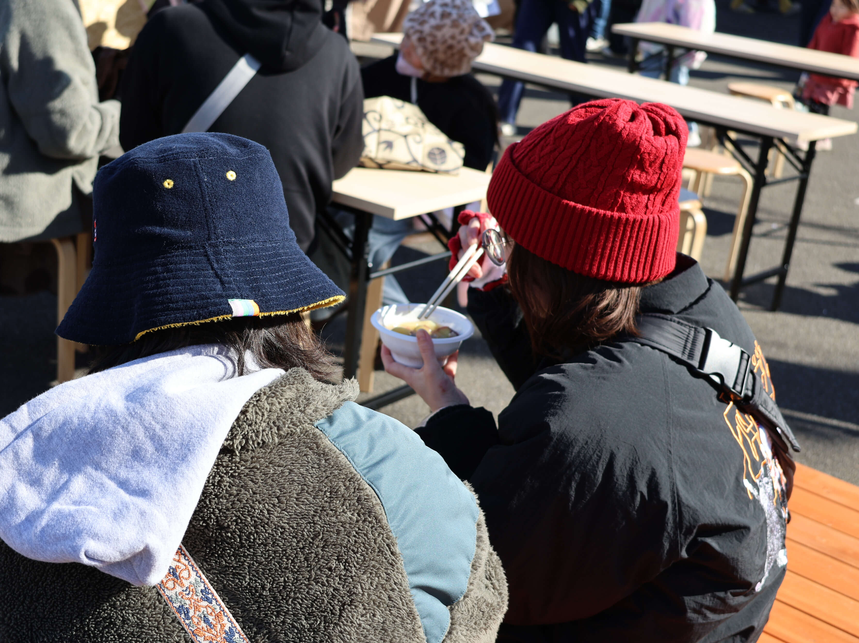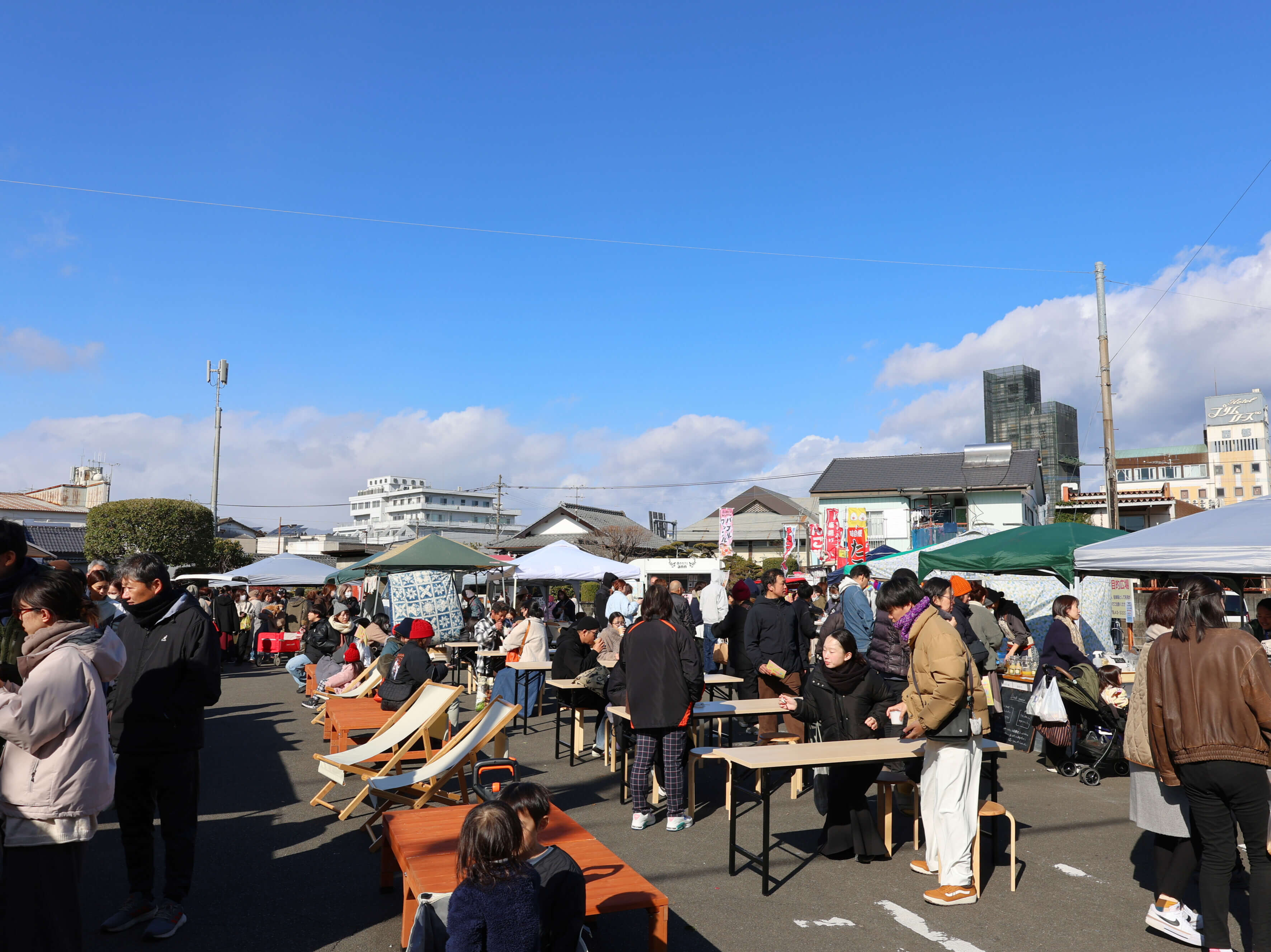 マルシェ当日、西都では珍しく雪がちらつき、風も強く、とても寒い一日となりました。それでも朝からまちなかには続々と人が集まり、気がつけば、各ブースの前には長い列が。