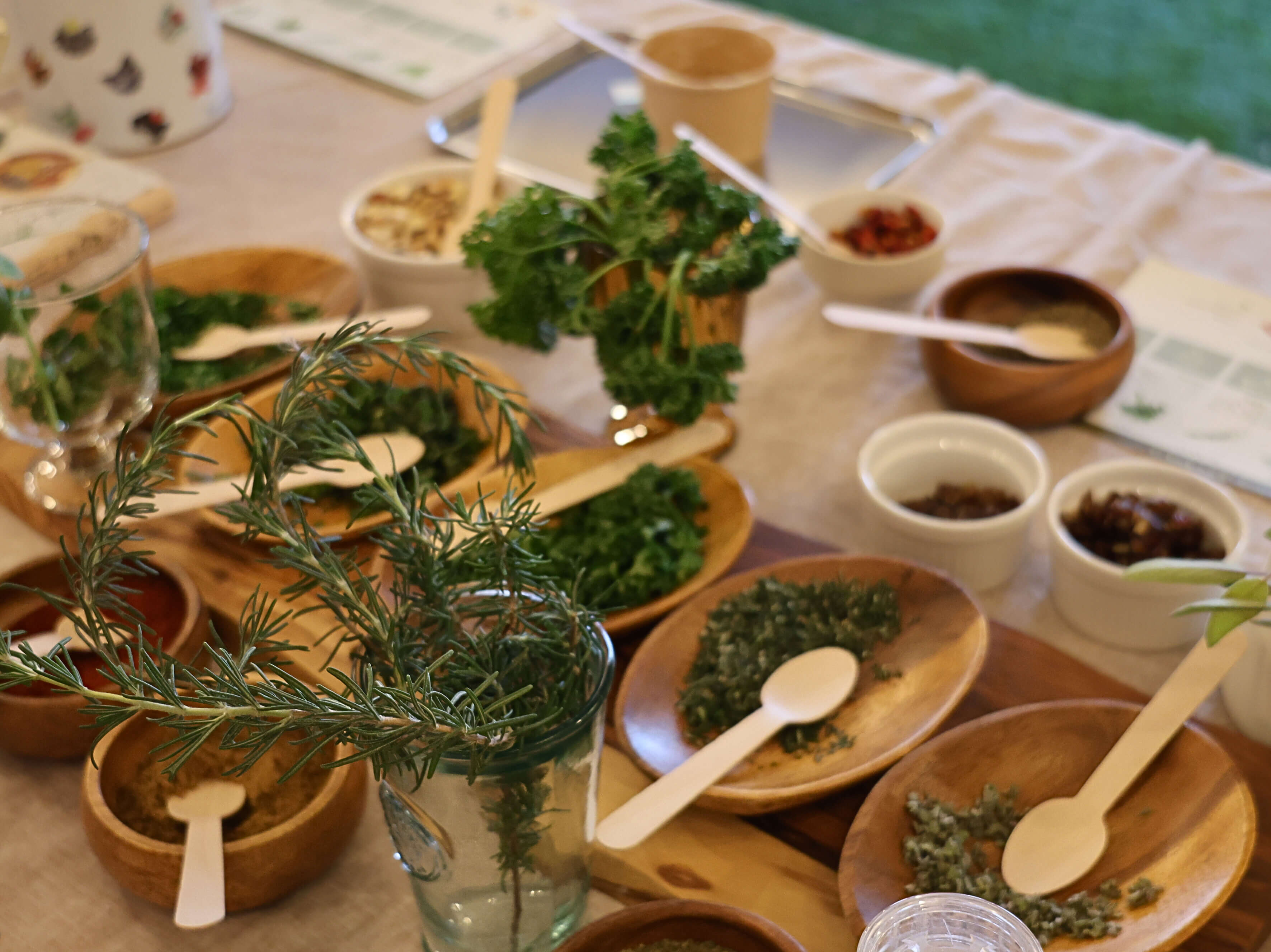 数種類のハーブの中から、好きなものを、好きな分だけ。思い思いに選び、自分だけのハーブバターをつくっていきます。