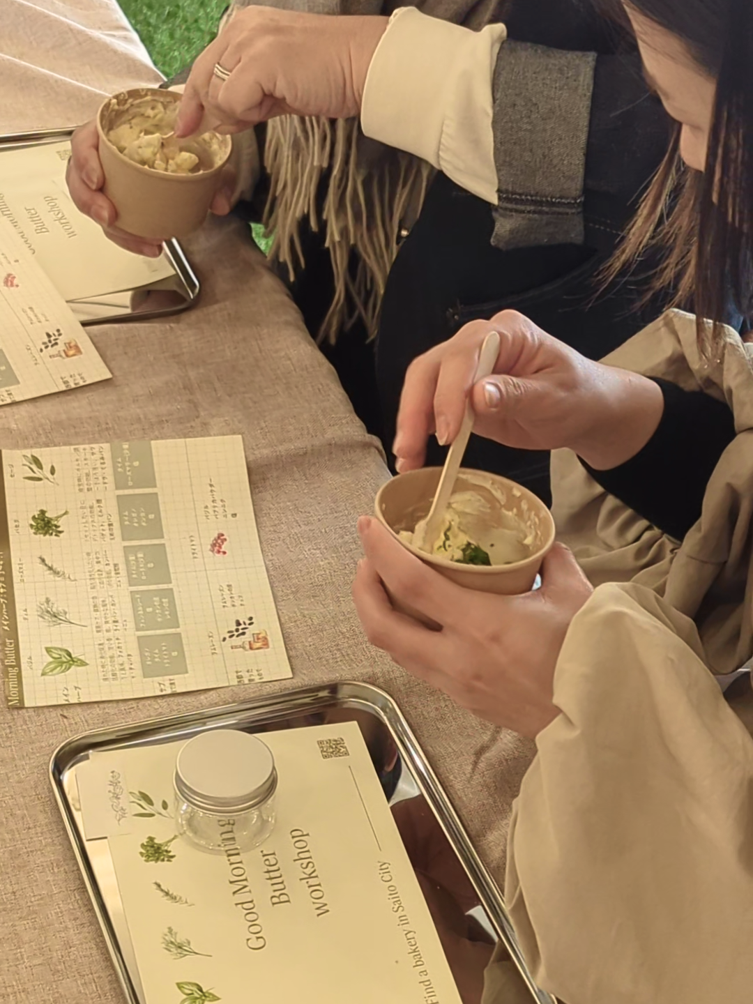 できあがったハーブバターは持ち帰って、その後の食卓の楽しみへ。そんな、明日の暮らしにつながるワークショップでした。