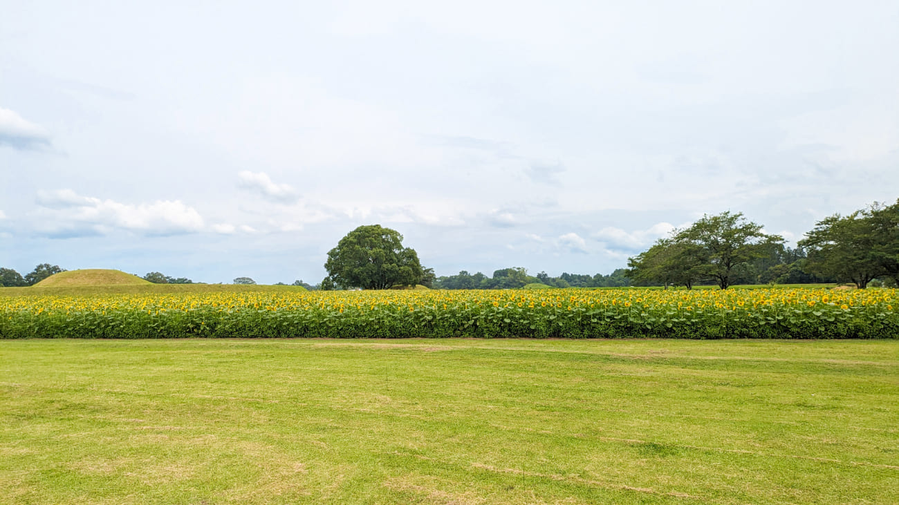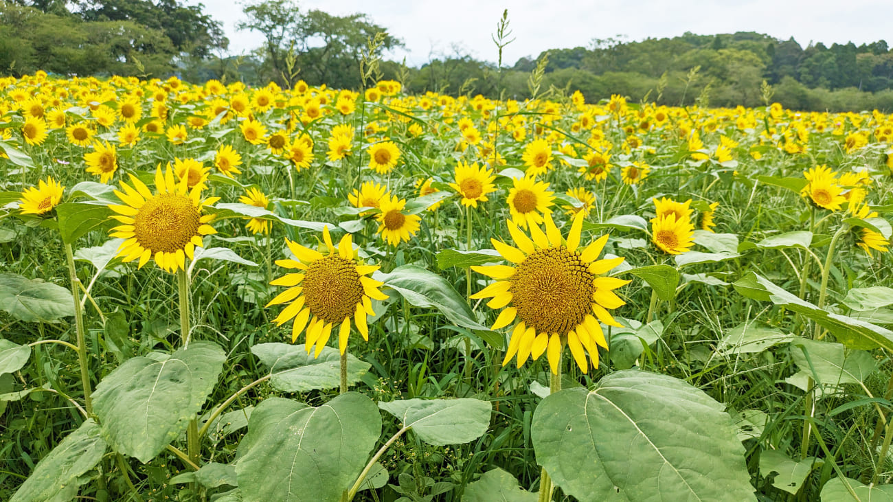 そして咲き誇るひまわりの本数はなんと100万本。背の低い品種のためひまわり畑を一望することができます。この景色は生で見るとより感動が深まります。