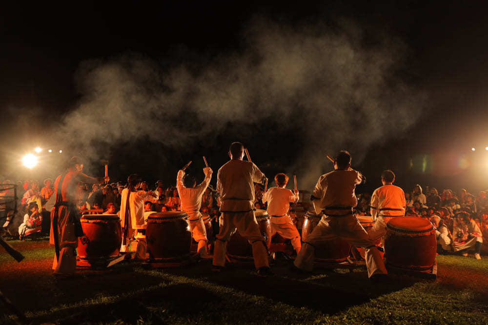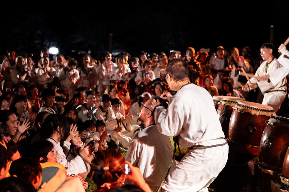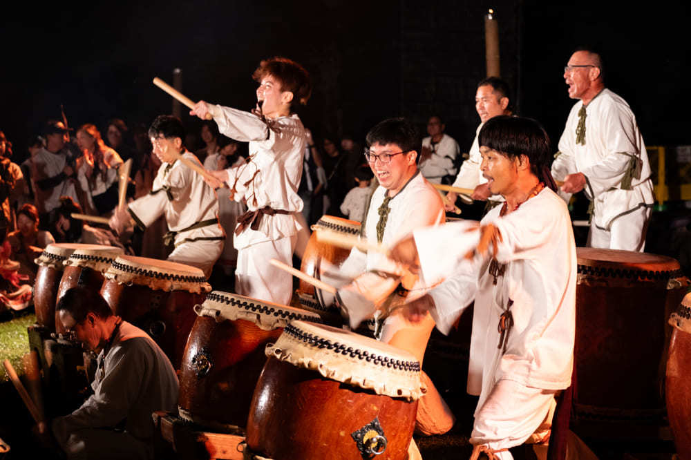 初日のメインイベントである炎の祭典が終了した後に披露される「古墳太鼓の奉納」。