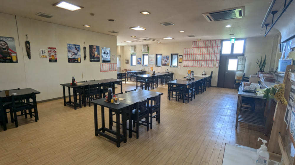 店内は広々としており、テーブル席とカウンター席があり、温泉利用者も宿泊利用者もどちらも利用が可能です。