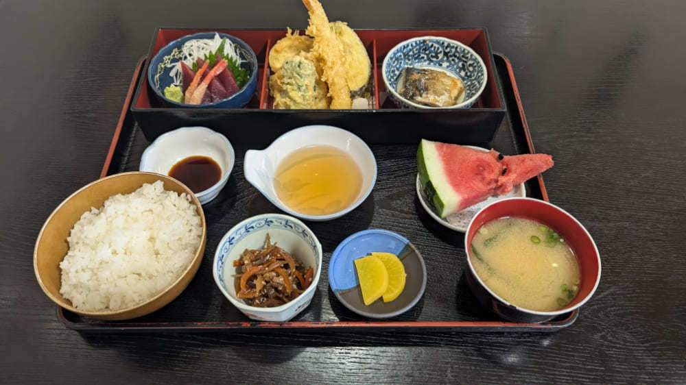 一番の人気メニューで、店名にも名前が入っている「ほづみ御膳」は、刺身やサクサクの天ぷら、サバの味噌煮など、たっぷりのおかずが楽しめる贅沢な定食です。
